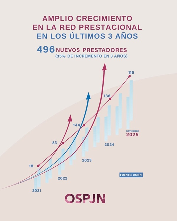 En el marco del plan de modernización y mejora continua que viene impulsando su actual conducción, la Obra Social del Poder Judicial de la Nación alcanzó en los últimos tres años un récord histórico al sumar 492 nuevos prestadores a su red y ampliarla en un 35%, totalizando 1.915 profesionales de cartilla. Solo en lo que va de 2025 se incorporaron 115 prestadores institucionales e individuales: 55 en la CABA, 21 en provincia de Buenos Aires y 29 en otras jurisdicciones, además de 10 odontólogos en distintos rincones del país.
